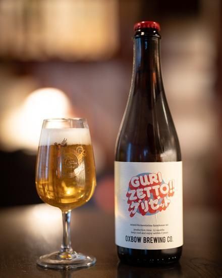 あの GURIZETTO! に OXBOW のミックスカルチャーを加えて仕込みから一年以上の追加の発酵熟成を重ねて、さらにおなじくミックスカルチャーで熟成したセゾンとブレットラガーをブレンドして仕上げたサワー版。